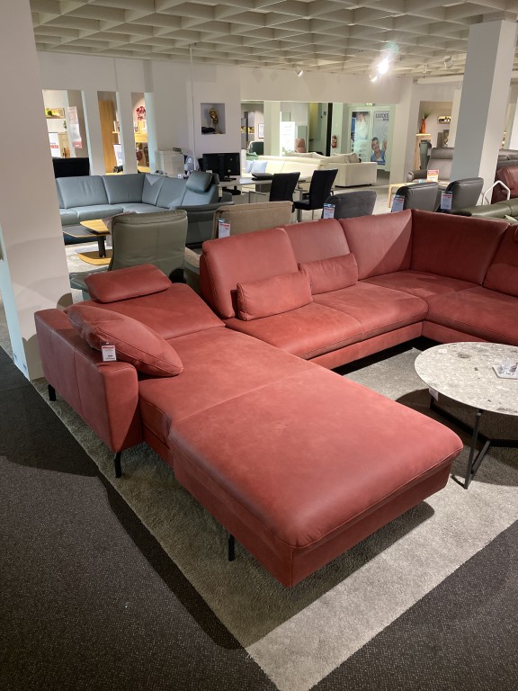 In Leder Aurelia barolo PG 140, Sitz Kaltschaum, Metallfuss schwarz matt, alle Teile Rücken echt, Liegefläche unecht, Sitzhöhe ca. 45 cm, Sitztiefe ca. 56 - 70 cm, Rückenhöhe ca. 87 - 115 cm, Tiefe ca. 106 cm, Schenkelmass ca. 340 x 220 cm, bestehend aus: